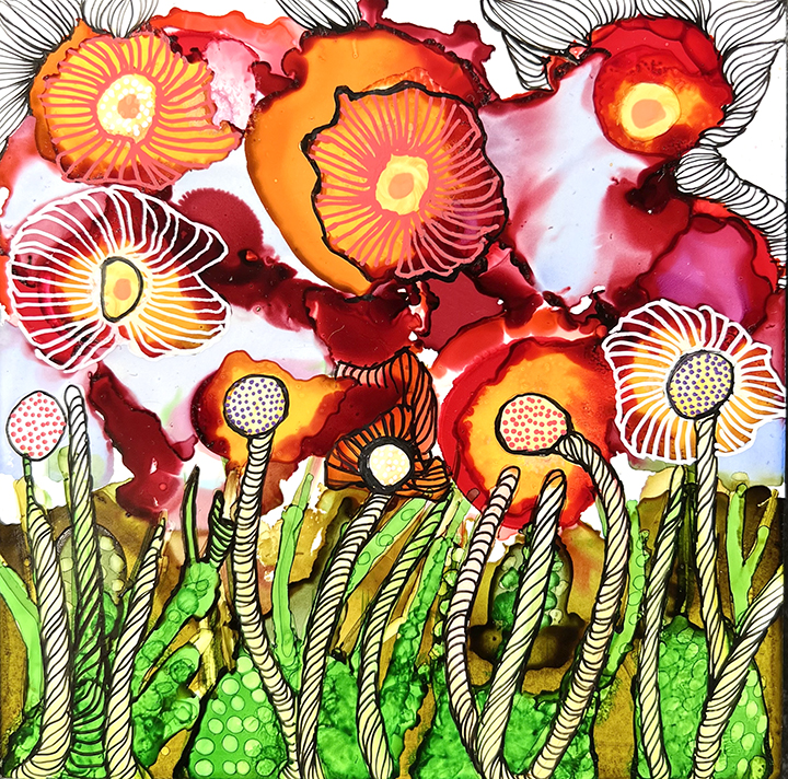 Encre à alcool sur nara marouflée sur panneau de bois galerie