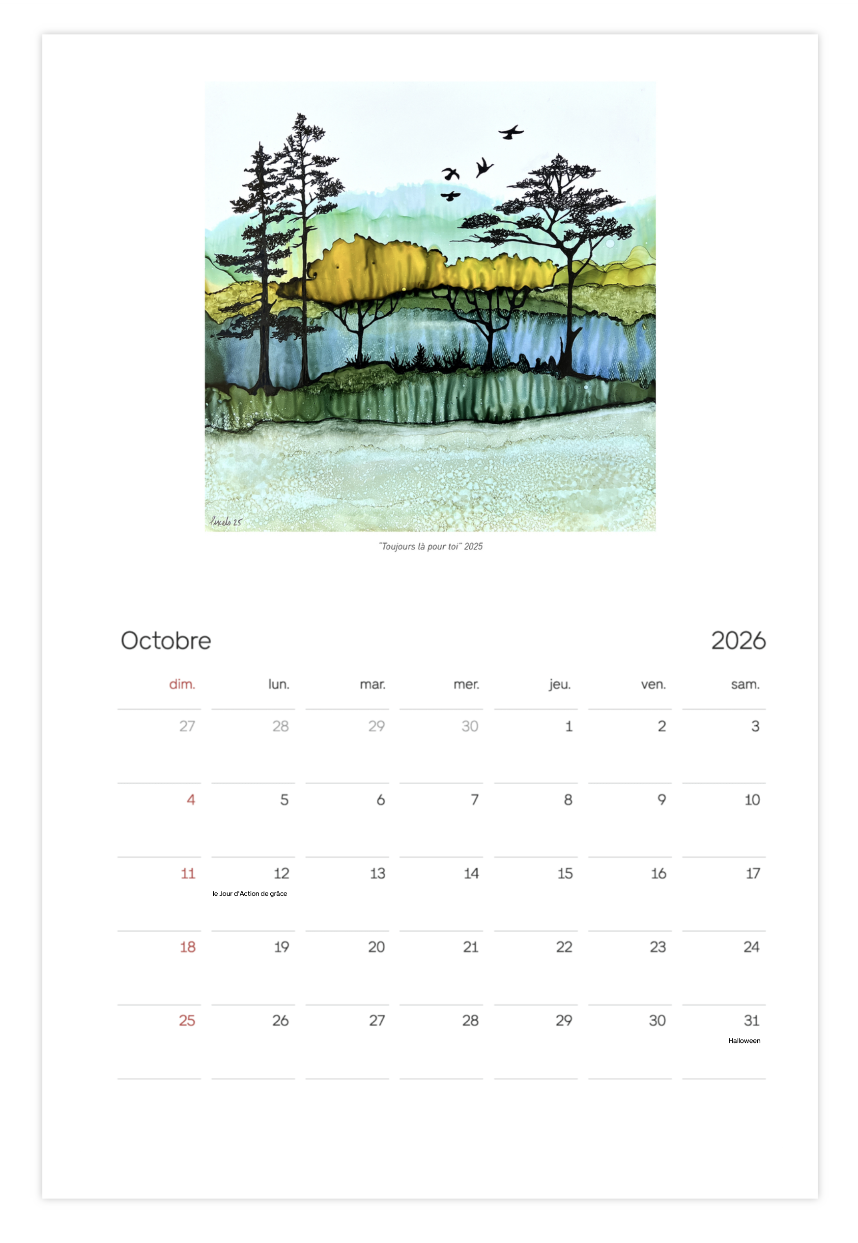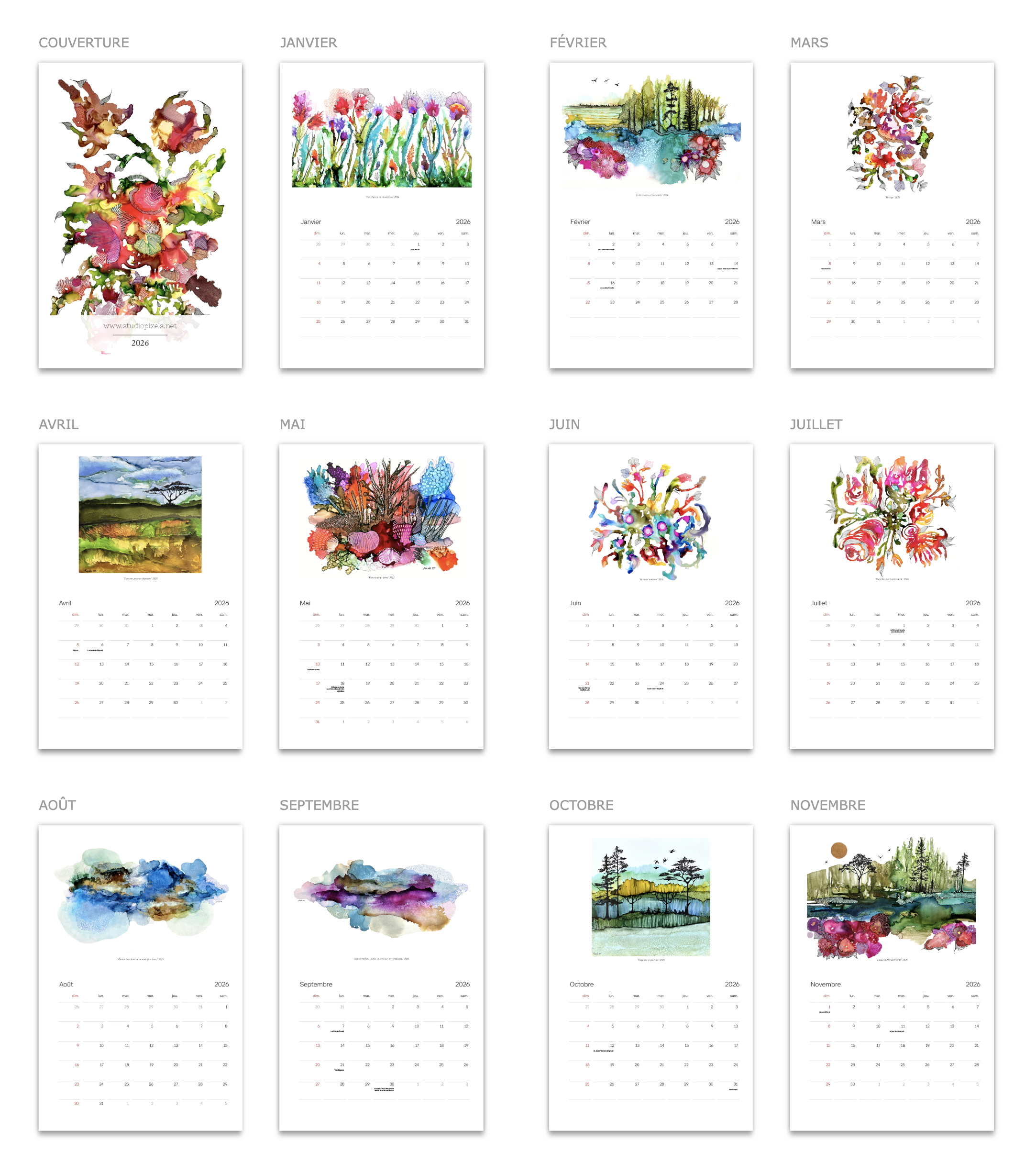 Cette année, je vous invite à plonger dans mon univers des encres à l’alcool avec mon calendrier 2026.
