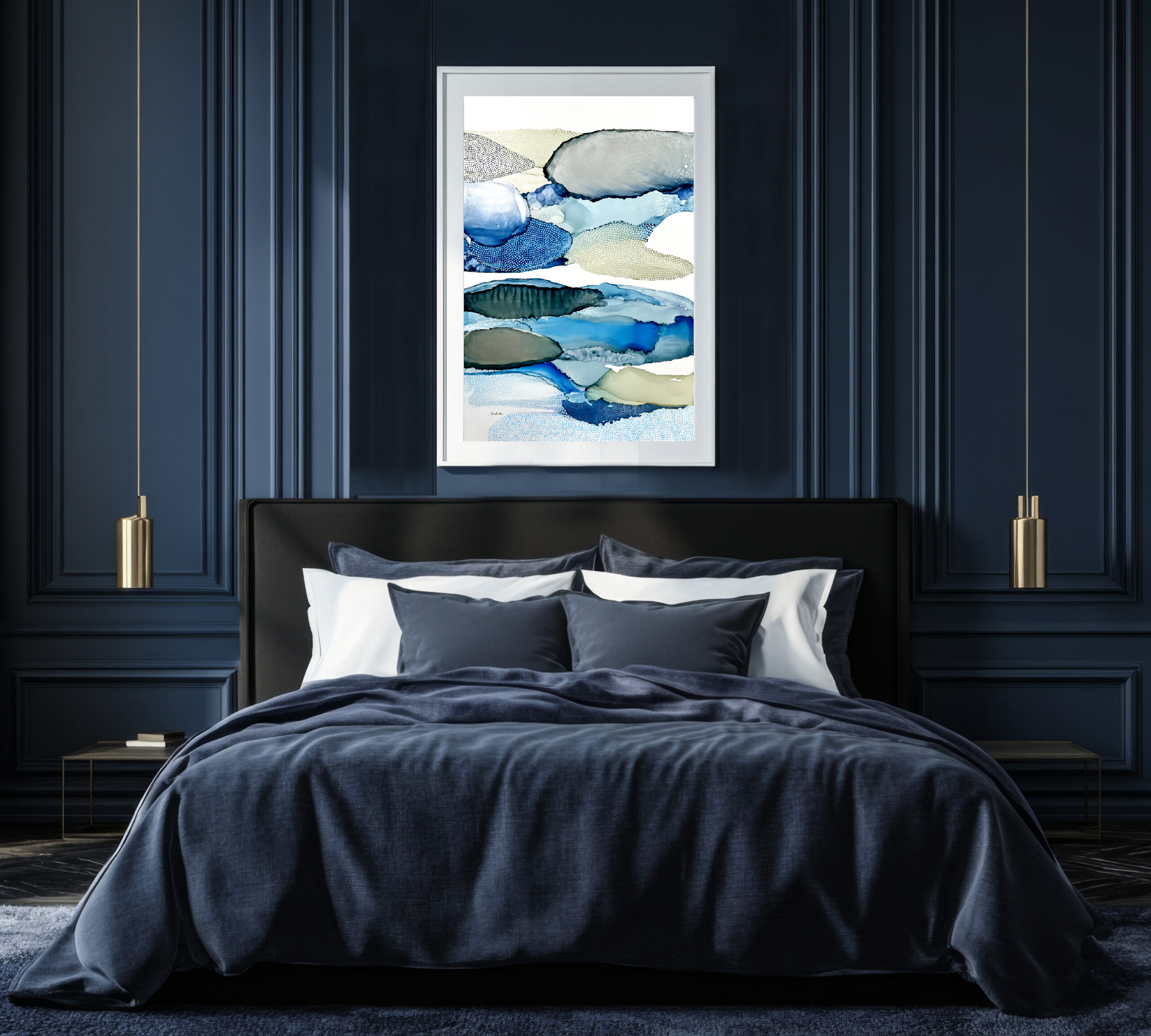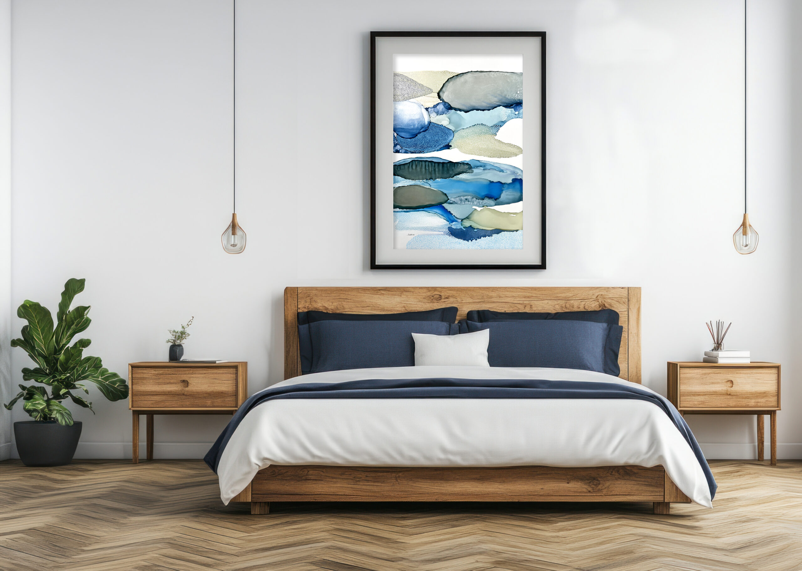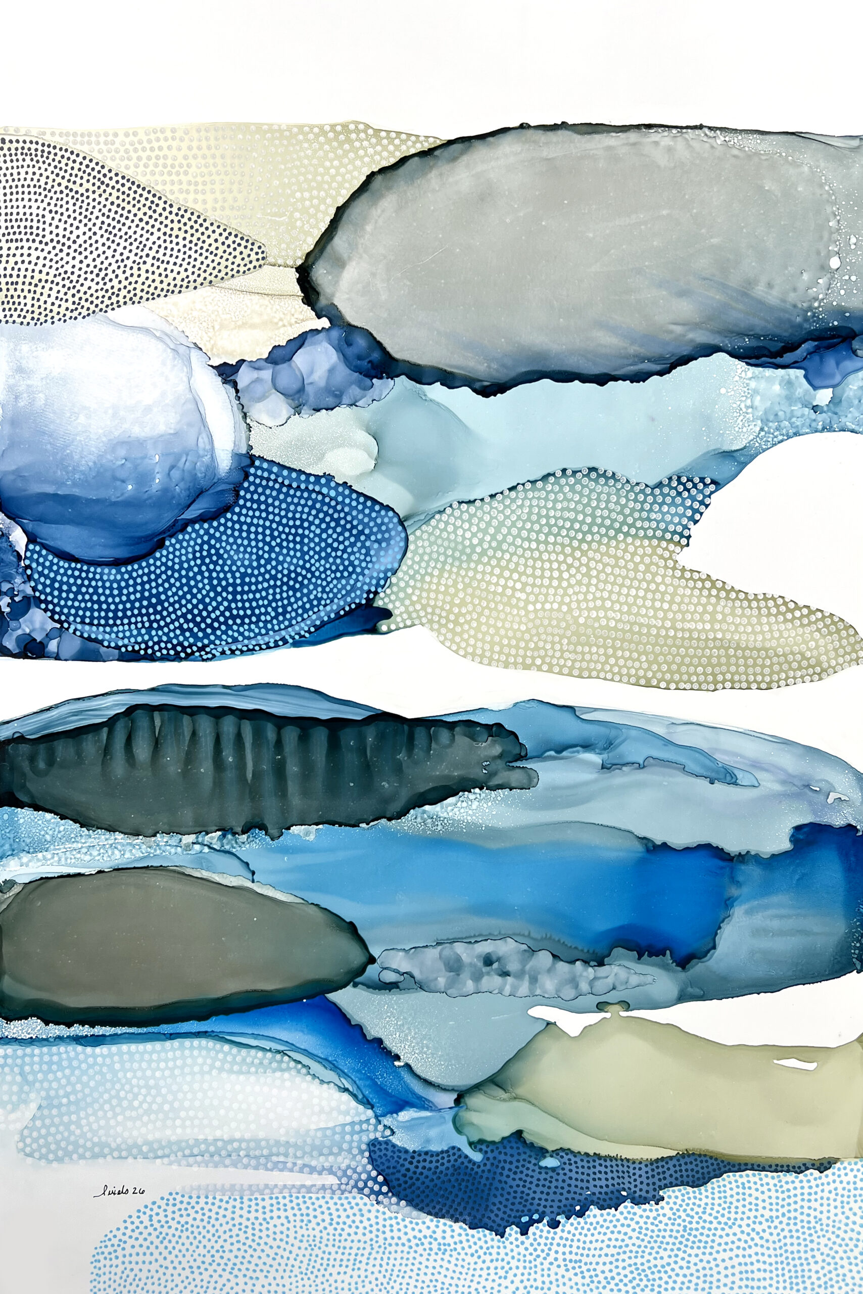 Encre à l’alcool et mixte média sur papier Nara marouflé