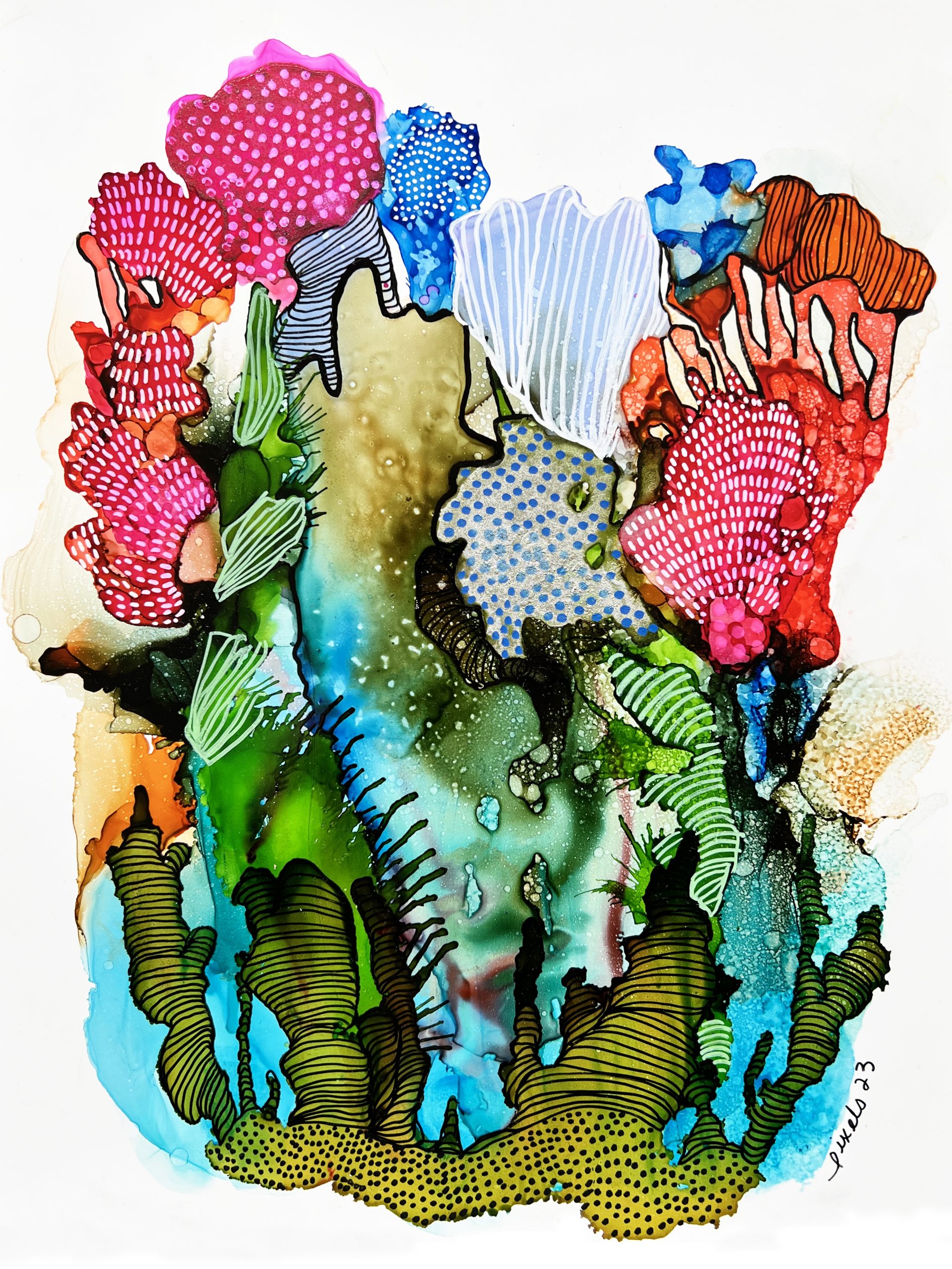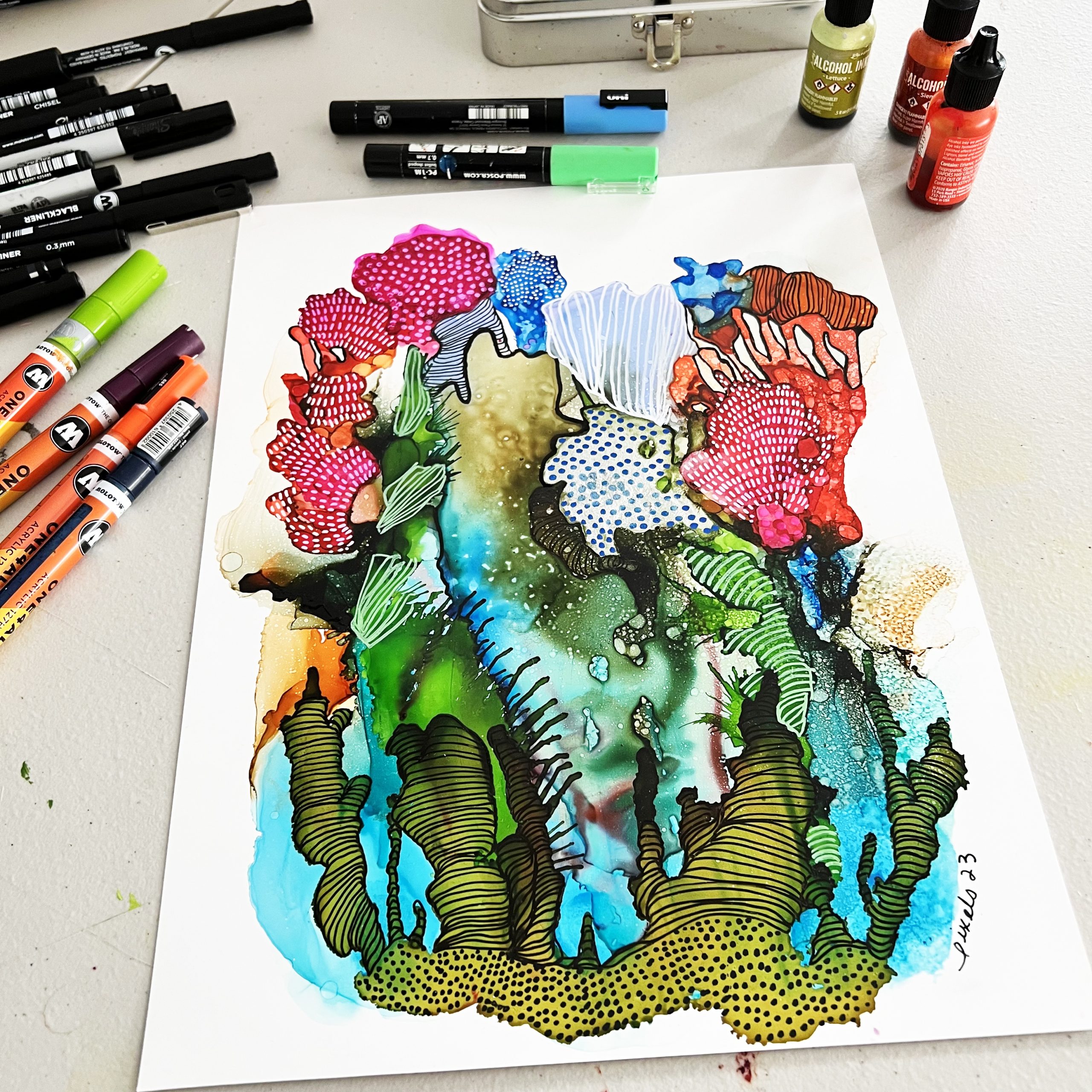 Encre à l’alcool et acrylique