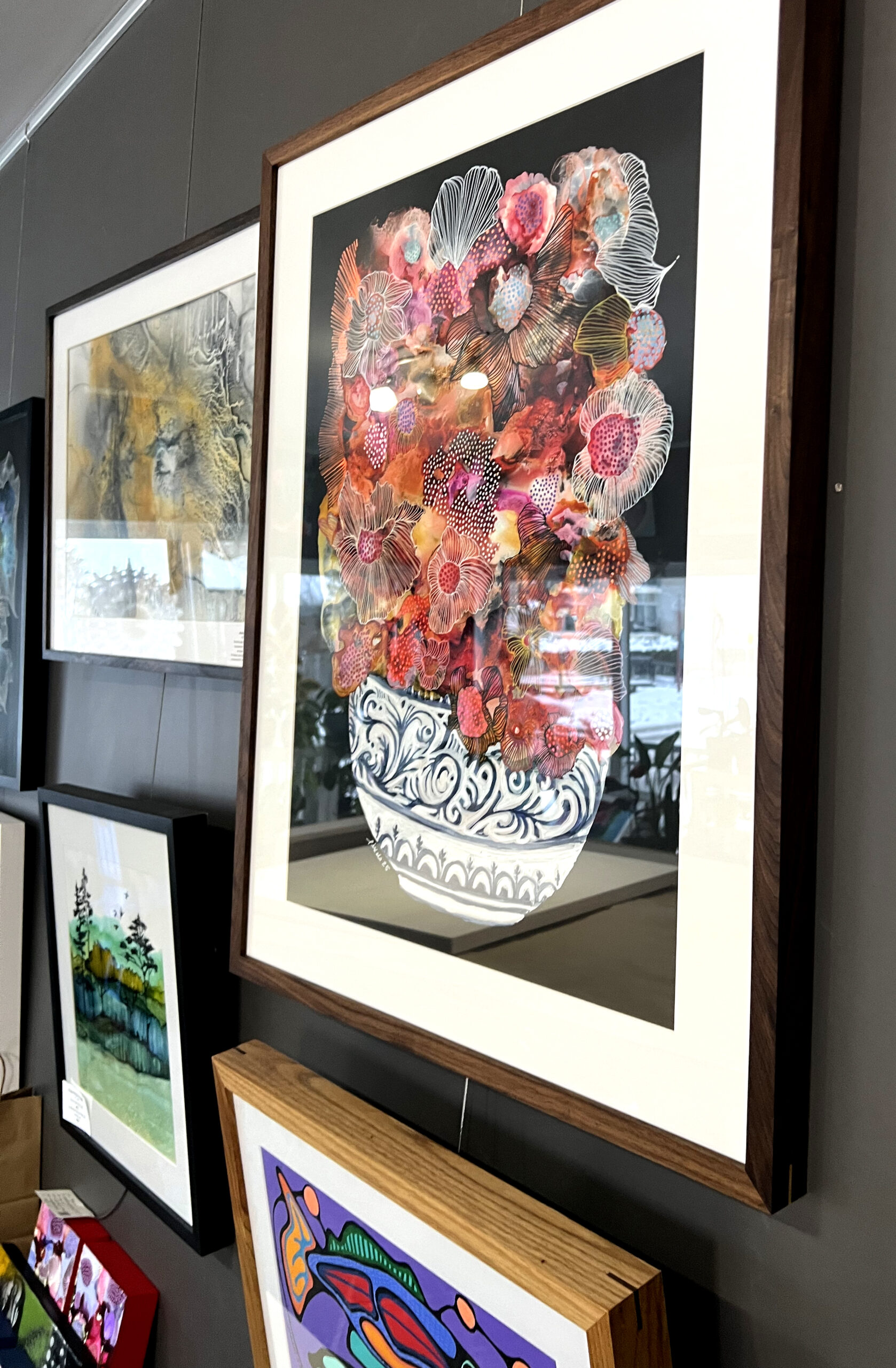 Encadrement en noyer noir et coti en érable rouge: 270$