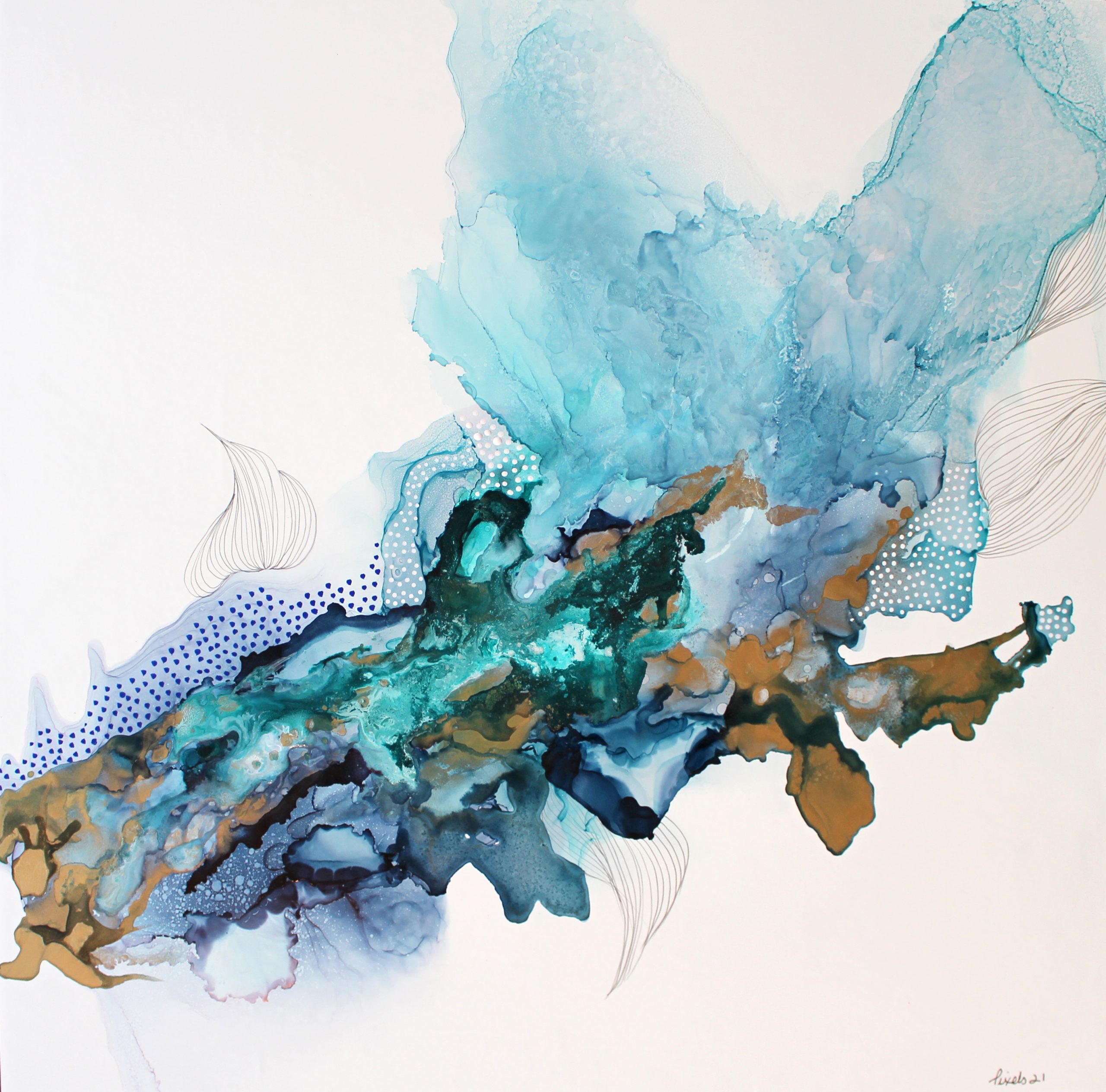 Encre à alcool sur yupo marouflée sur bois galerie,