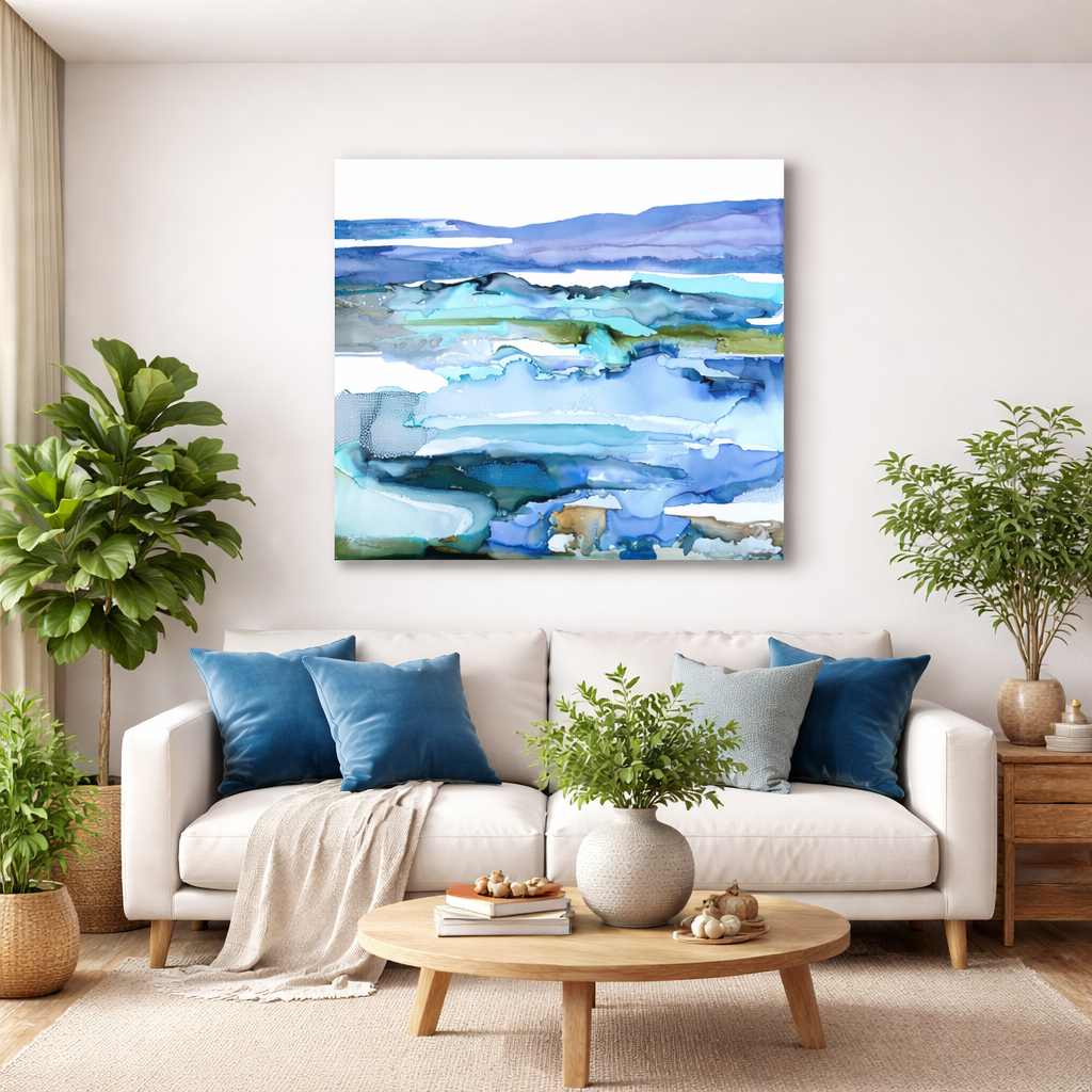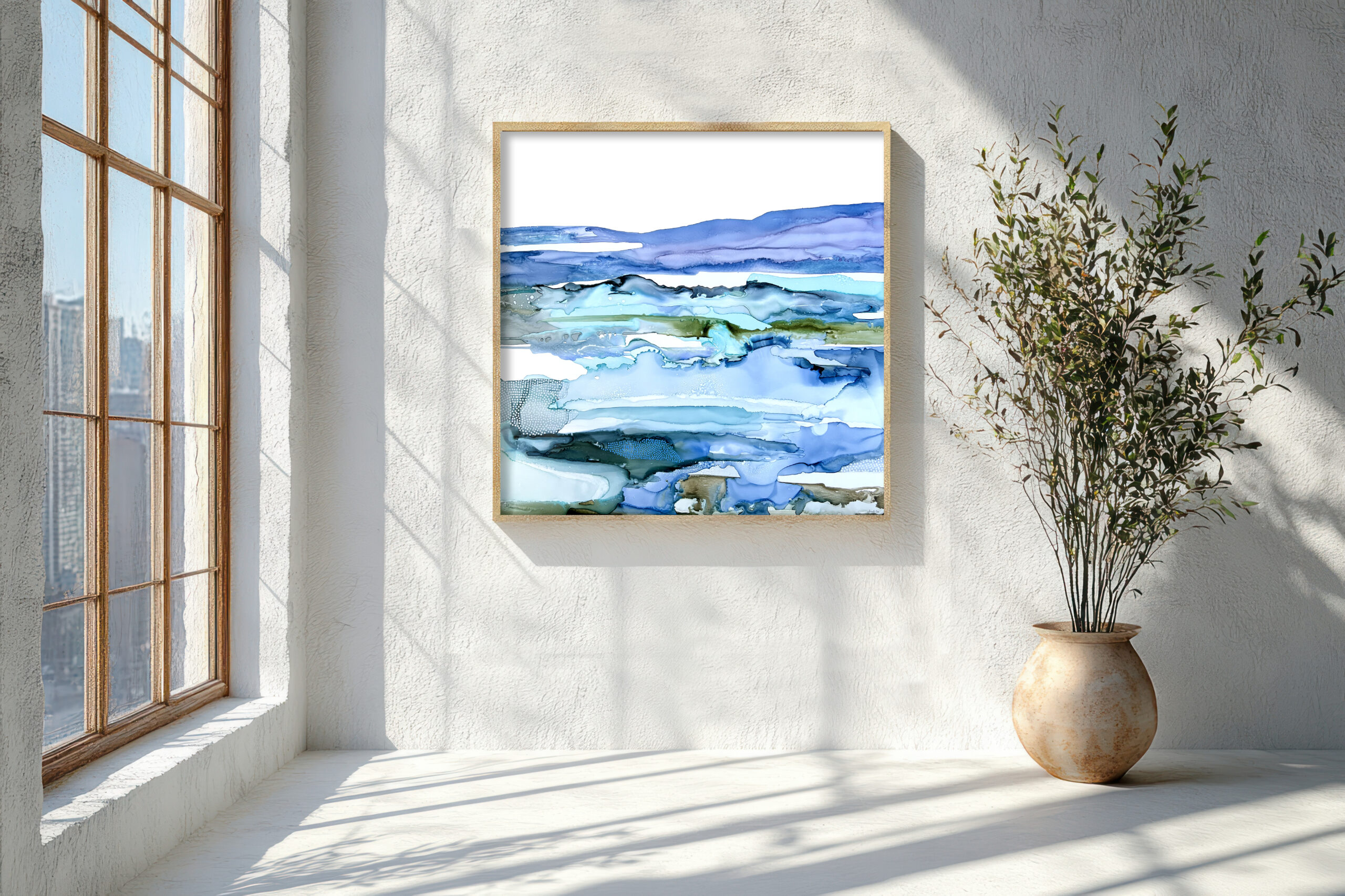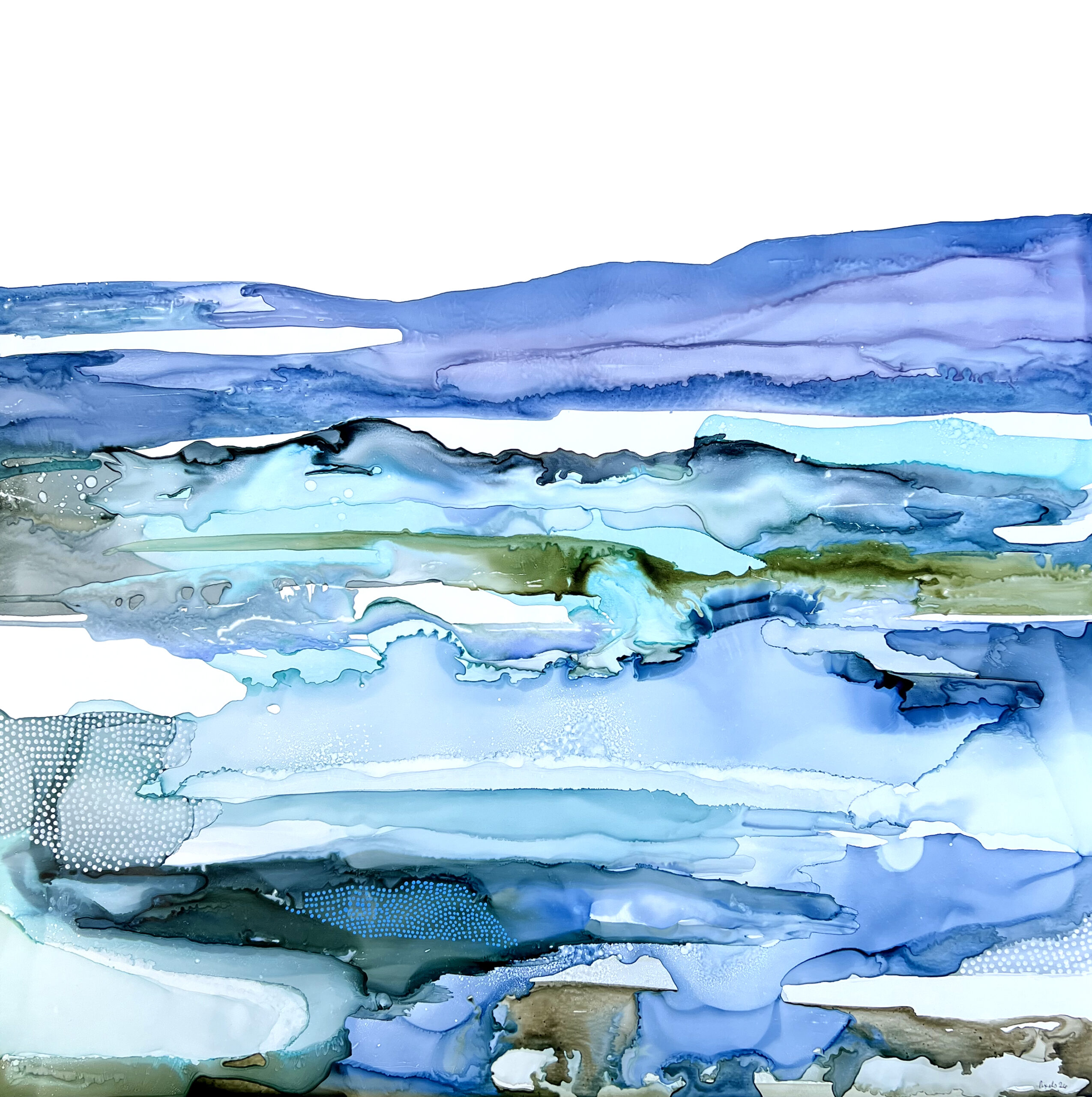 Encre à l’alcool et mixte média sur papier Nara marouflé