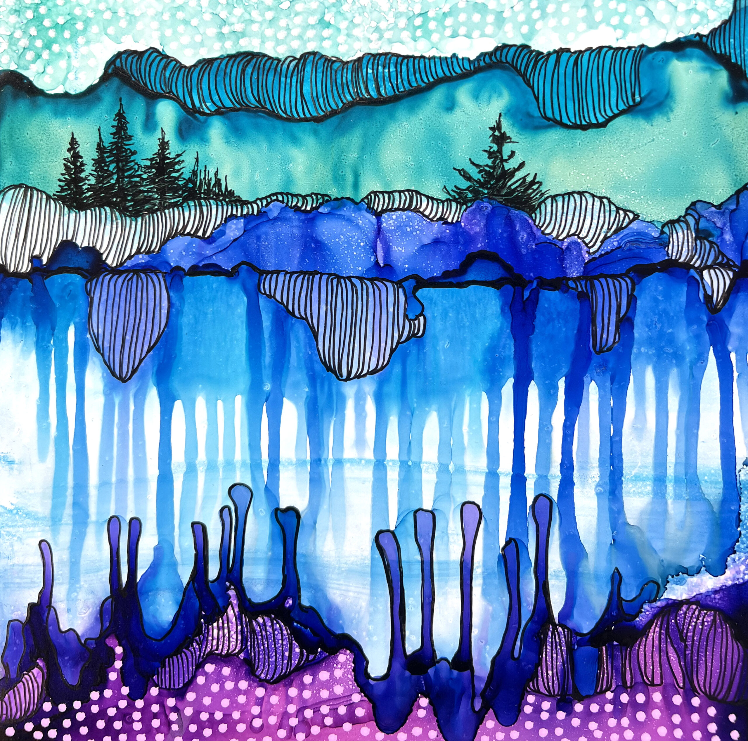 Encre à l’alcool sur Nara marouflé sur panneau de bois