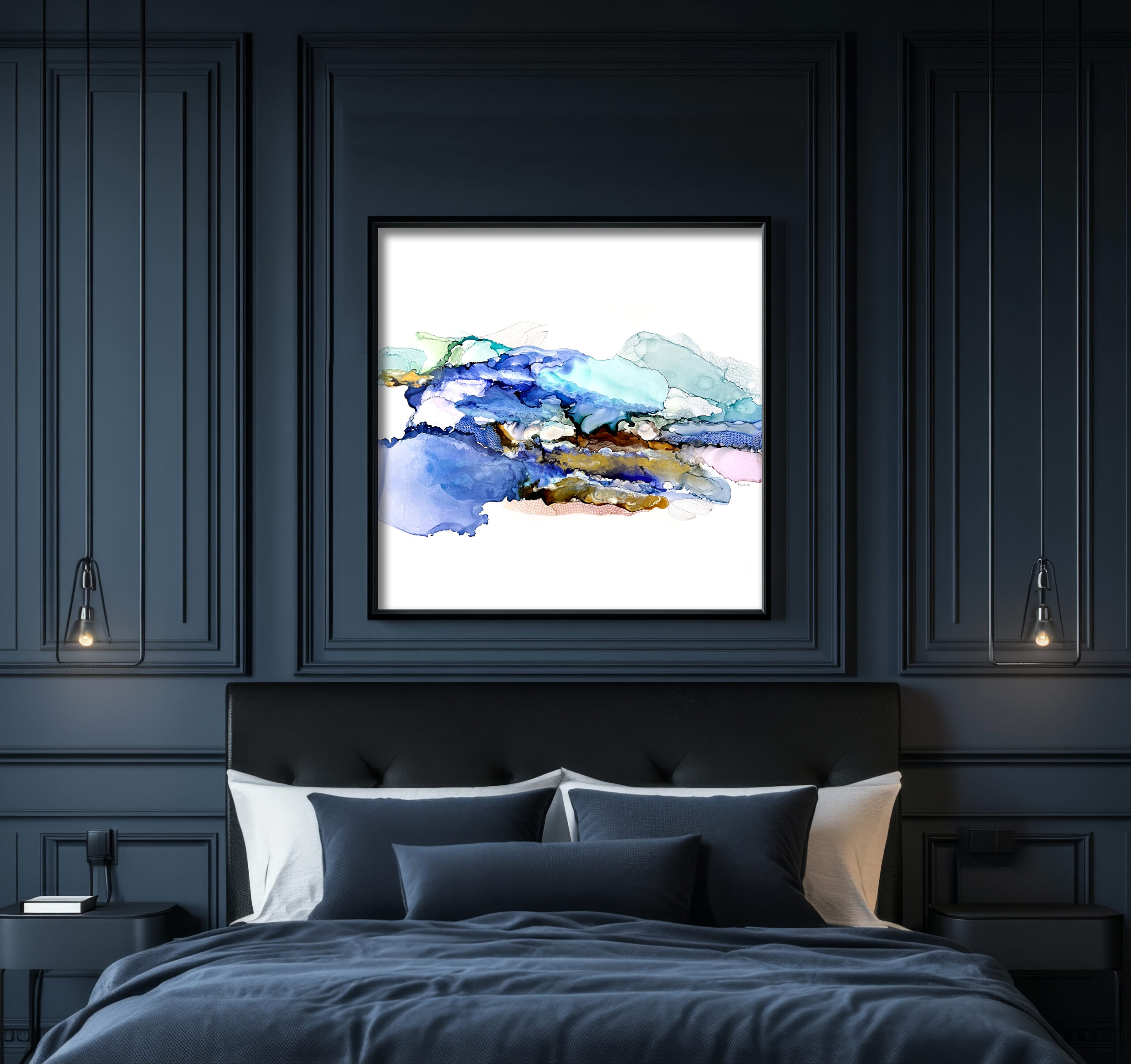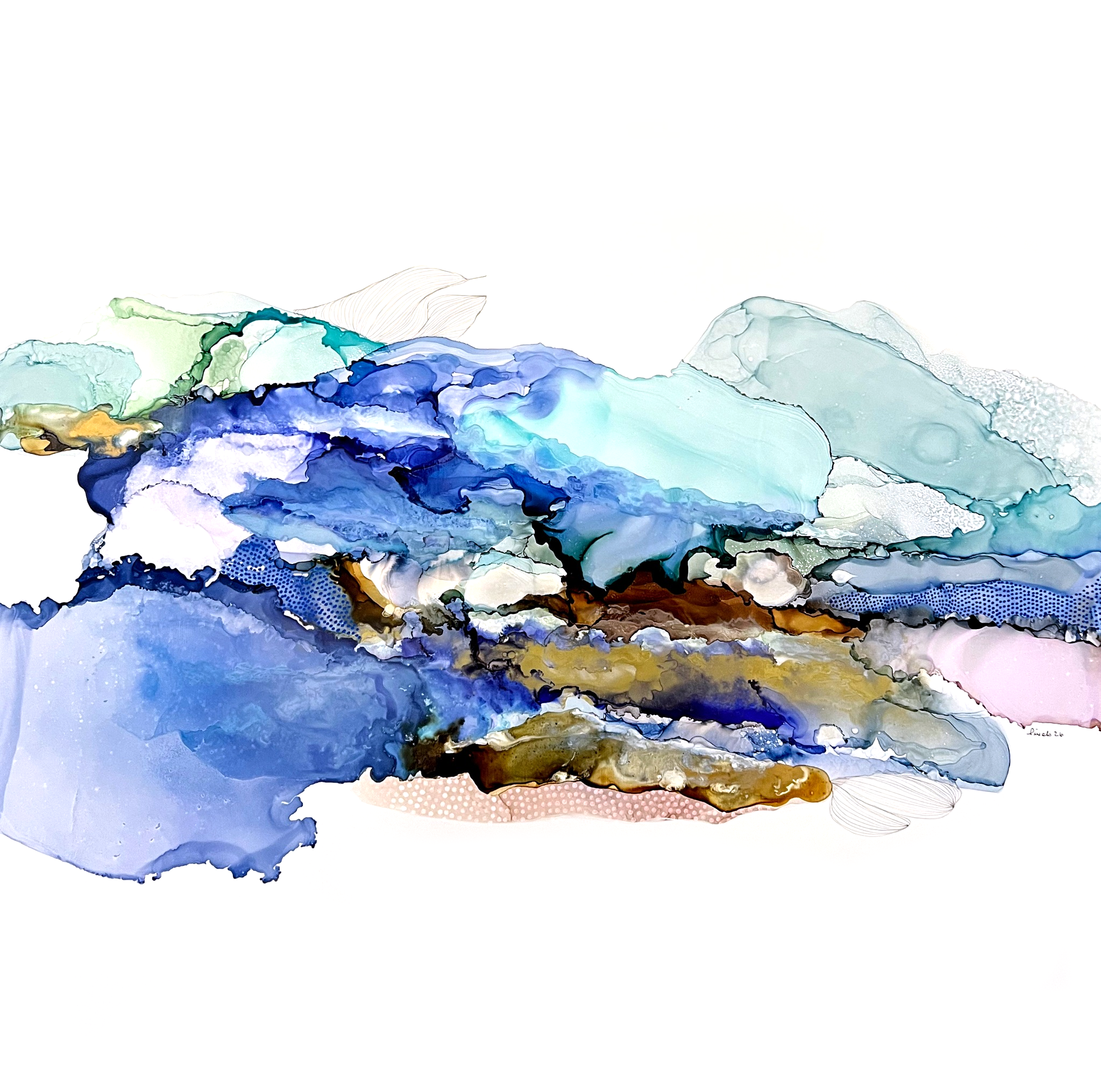 Encre à l’alcool et mixte média sur papier Nara marouflé